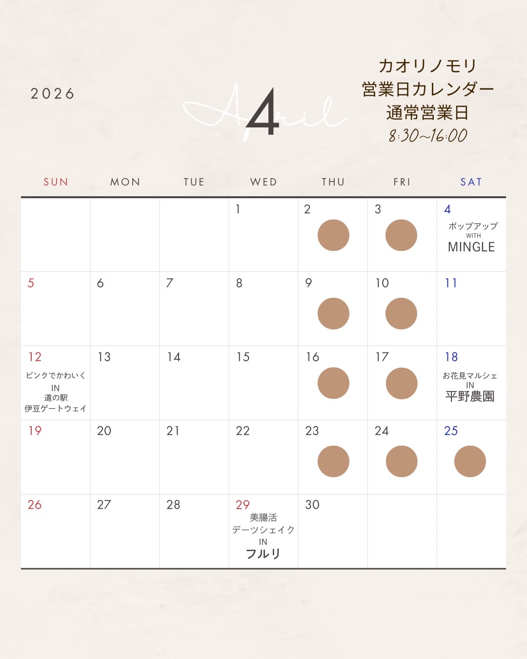 4月営業日のお知らせ